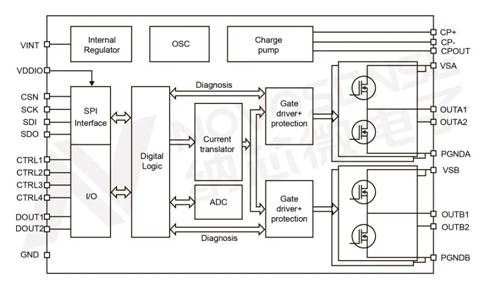 • 可編程輸入IO口,用于直接控制步進時鐘/方向/保持,或者直接半橋控制