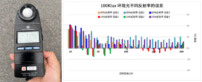 ND06傳感器具有出色的抗戶外強(qiáng)光表現(xiàn),其主要體現(xiàn)在100Klux的戶外強(qiáng)光環(huán)境下,還能保持高精度測距。同時,其性能也不受不同材質(zhì)的影響。