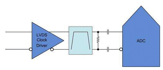 圖1.典型ADC LVDS時(shí)鐘電路(濾波器可選)。