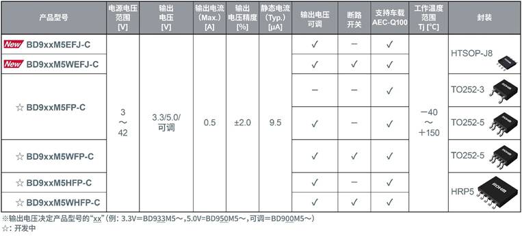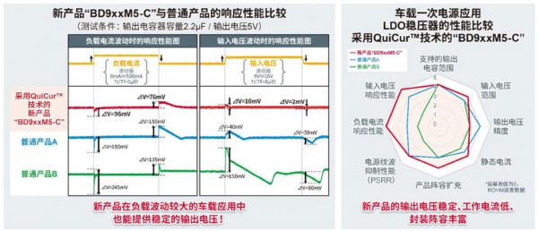 新產(chǎn)品“BD9xxM5-C”滿足對車載產(chǎn)品的基本要求,比如150℃工作、符合車載電子產(chǎn)品可靠性標準“AEC-Q100”等。而且,利用QuiCur™技術(shù),實現(xiàn)了出色的響應(yīng)性能,消耗電流也很低,目前計劃開發(fā)多種封裝,以便客戶根據(jù)使用環(huán)境靈活選擇。