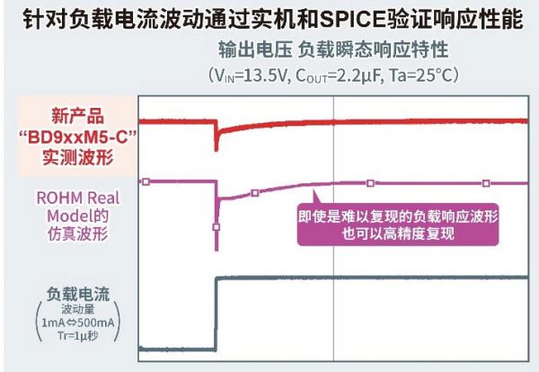 對于電源IC而言,微控制器、傳感器等后級電子電路均可視為“負載”。當這些負載工作時,會流過電流(負載電流),這會導(dǎo)致電源IC的輸出電壓波動(下降)。負載響應(yīng)特性是指恢復(fù)受負載電流影響而波動的電壓所需的響應(yīng)時間以及電源的穩(wěn)定性。