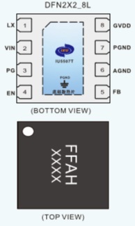 IU5507T內(nèi)置功率MOSFET,使用過(guò)壓、過(guò)流、過(guò)熱、短路等諸多保護(hù)電路,在超過(guò)控制值時(shí)會(huì)自動(dòng)斷開(kāi),以保護(hù)芯片。IU5507T采用了纖小的DFN2*2_8L封裝,最低可達(dá)到小于6μA漏電,最適合在移動(dòng)設(shè)備的電源內(nèi)部使用。