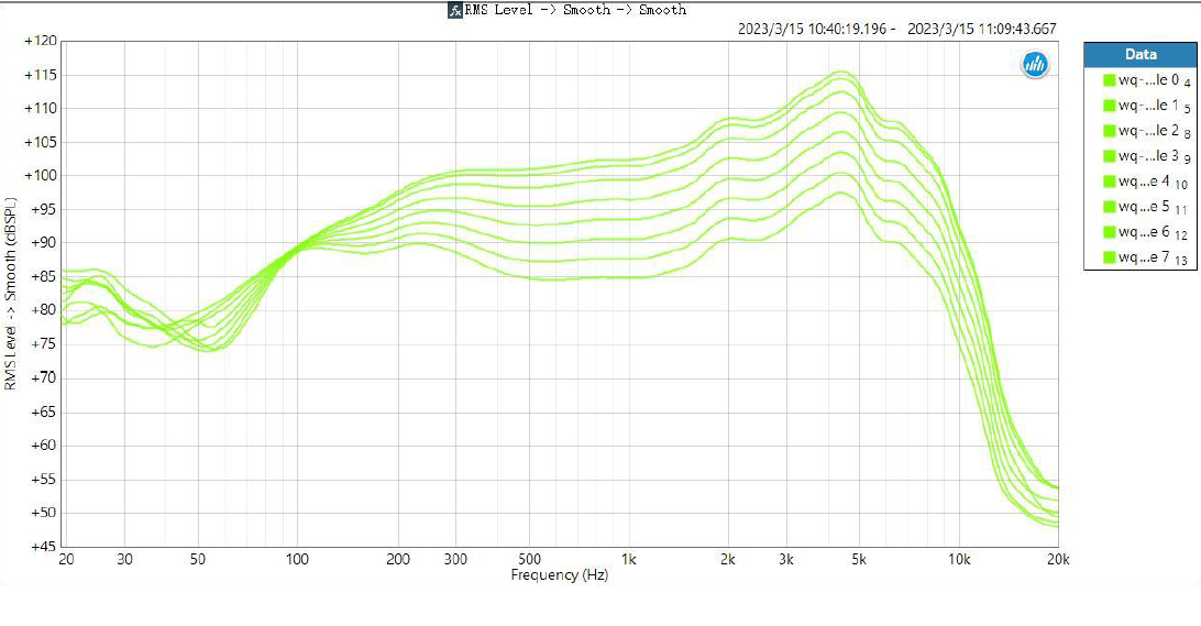 對(duì)比傳統(tǒng)入耳式耳機(jī),開(kāi)放式耳機(jī)在低頻部分泄露較大;當(dāng)音量降低時(shí),低頻部分的聽(tīng)感增益降低更多;而WQ7034MX提供動(dòng)態(tài)EQ算法,當(dāng)音量降低時(shí),能維持低頻部分(如在100Hz,頻率可調(diào))的輸出增益不變,且具有DSP平滑處理功能,可消除EQ頻繁切換時(shí)的POP音。