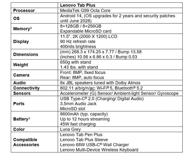 Lenovo™推出了Lenovo Tab Plus。這是一款?yuàn)蕵菲桨咫娔X,配有8個(gè)JBL揚(yáng)聲器,采用經(jīng)Dolby Atmos®調(diào)諧的高保真矩陣結(jié)構(gòu),可提供卓越的聲學(xué)體驗(yàn)。這款為音樂愛好者設(shè)計(jì)的11.5英寸平板電腦配備了2K顯示屏,帶來生動(dòng)的視覺效果,對(duì)其優(yōu)質(zhì)音效形成完美補(bǔ)充,并且擁有可調(diào)節(jié)支架,可從各個(gè)角度帶來最佳享受。