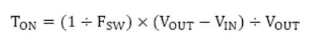首先,要想確定低邊開(kāi)關(guān)的導(dǎo)通時(shí)間,需要根據(jù)開(kāi)關(guān)頻率Fsw計(jì)算出一個(gè)周期的時(shí)間,并根據(jù)VIN、VOUT的升壓比計(jì)算出導(dǎo)通時(shí)間的比率,最終計(jì)算出導(dǎo)通時(shí)間TON。