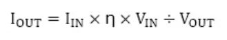 當(dāng)VIN、VOUT、Fsw條件恒定時(shí),紋波電流IRIPPLE與電感值L成反比。電感值不像電阻那樣能以E24之類的精度標(biāo)準(zhǔn)來(lái)選型,只能以E6程度的標(biāo)準(zhǔn)來(lái)選型,因此需要選擇紋波電流接近目標(biāo)值的電感器。最大開(kāi)關(guān)電流減去按所選電感計(jì)算出的紋波電流IRIPPLE的1/2后得到的值,即為最大輸入電流IIN。最大輸出電流IOUT與轉(zhuǎn)換效率η和升壓比VOUT÷VIN成反比,其計(jì)算公式如下: