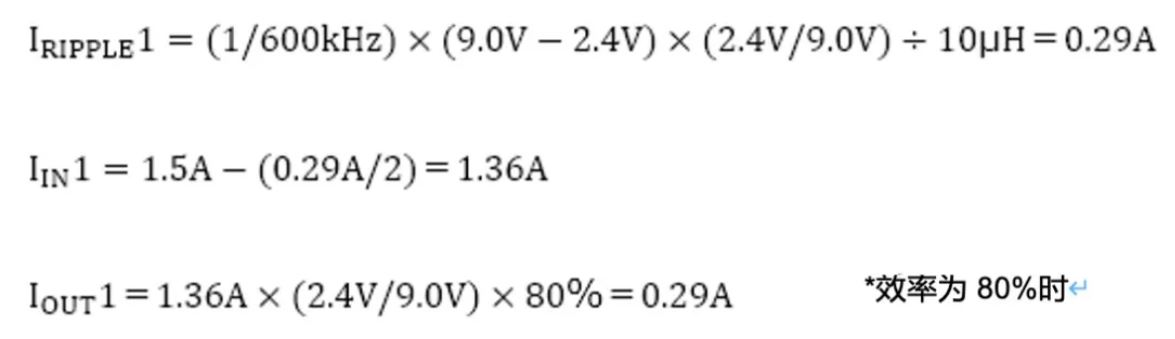 電感電流變化量ΔI與時(shí)間和施加電壓成正比,與電感值成反比,ΔI=T×V÷L,因此通過(guò)計(jì)算ΔI,即可求出紋波電流IRIPPLE