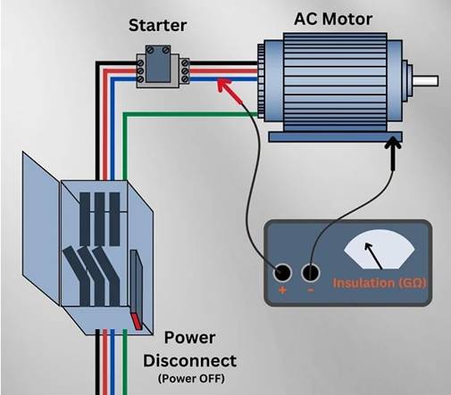 圖3.交流電機(jī)和相關(guān)起動(dòng)設(shè)備的典型兆歐表測(cè)試布局。圖片由控制自動(dòng)化工程團(tuán)隊(duì)提供