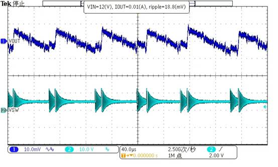 Vin=12V, Vout=5V, Iout=10mA 時(shí) Ripple<19mV