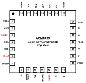 深圳市永阜康科技有限公司現(xiàn)在大力推廣支持3霍爾應(yīng)用全集成三相直流無刷(BLDC)電機(jī)ASIC-ACM6755.該芯片工作電壓5V-28V,相電流4.8A,集成算法+預(yù)驅(qū)+MOS,QFN-28封裝。無需編寫任何應(yīng)用軟件,只需通過上位機(jī)軟件對芯片的參數(shù)進(jìn)行配置,從而適應(yīng)不同的電機(jī)參數(shù)和性能需求。高集成度以及精簡外圍特別適用于高功率密度、小尺寸、靜音要求高的三相無刷電機(jī)驅(qū)動器應(yīng)用場景。