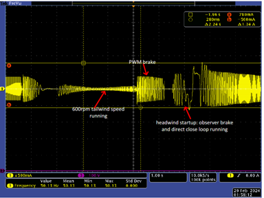 圖4 逆風(fēng)啟動(dòng)相電流波形圖