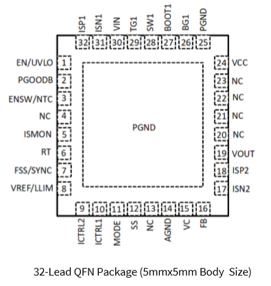 YX20105采用 5mmx5mm 32引腳QFN封裝