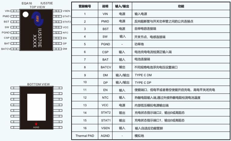 IU5370E是一款適用于Type-c接口輸入,36V高耐壓、3.6V-20V寬輸入范圍,支持多種電池規(guī)格的單節(jié)鋰電池/鋰離子聚合物電池以及磷酸鐵鋰電池的同步降壓充電管理IC。IU5370E集成功率MOS,采用同步開(kāi)關(guān)架構(gòu),使其在應(yīng)用時(shí)僅需極少的外圍器件,可有效減少整體方案尺寸,降低BOM成本。IU5370E具有最大3.5A的充電電流能力,充電電流可以通過(guò)外部電阻靈活可調(diào)。并且內(nèi)置頻率抖動(dòng)功能,明顯優(yōu)化EMI特性。