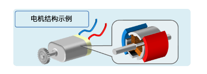 現(xiàn)在,相信您已經(jīng)明白了機(jī)械能是通過(guò)磁體的相吸與相斥的力而獲得的,那么,持續(xù)的旋轉(zhuǎn)運(yùn)動(dòng)是如何實(shí)現(xiàn)的呢?關(guān)于這一點(diǎn),只要看看無(wú)線遙控汽車和電子制作等作品中使用的電機(jī)的結(jié)構(gòu),其實(shí)很容易理解。