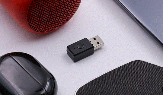 這款尺寸為 32.8 x 16.3 x 8.5 毫米的音頻發(fā)射器加密狗可提供簡單易用的即插即用操作。插入任何主機(jī)設(shè)備(如 Windows PC 或 MacOS 電腦、平板電腦或電視機(jī))的 USB-A 端口后,可通過下拉菜單進(jìn)行配置,其中包括一個按鈕,用于與一個或多個接收設(shè)備配對并進(jìn)行音頻廣播。