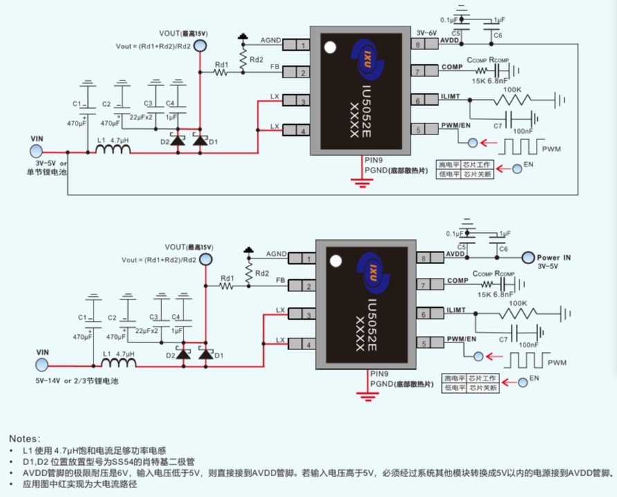 IU5052E最高可提供15V恒定的電壓輸出;最大可保證14A的電感電流下負載穩(wěn)定工作.低至3V的啟動電壓,3~14V的寬工作電壓范圍,可最大限度的適用于各種終端設(shè)備。