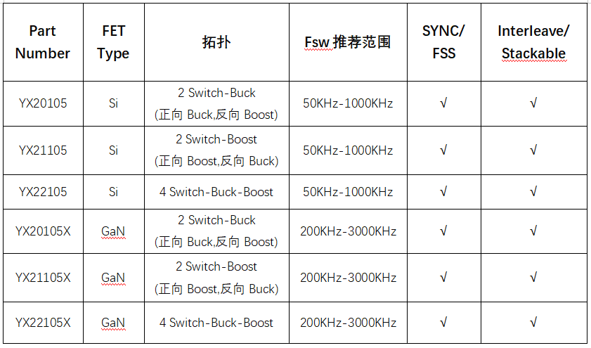 YX22105系列包括升壓,降壓,升降壓,以及GaN應(yīng)用優(yōu)化等各種版本,為各個應(yīng)用場景提供最優(yōu)解決方案。