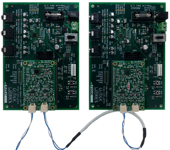 首先最好能夠有一套DEMO平臺(tái)搭起來,方便我們進(jìn)行問題定位。目前需求載體的主要有三個(gè)方面,一個(gè)是Master主機(jī)部分,一個(gè)是麥克風(fēng)從機(jī),還有一個(gè)是功放從機(jī)。推薦連接順序?yàn)椋篍VAL-AD2428WD1BZ -> EVAL-AD2428WB1BZ -> EVAL-AD2428WC1BZ,待客戶完成自主板設(shè)計(jì)后,通過替換測(cè)試看看是否能正常運(yùn)行。(假如對(duì)硬件原理設(shè)計(jì)比較熟悉,可以跳過。)