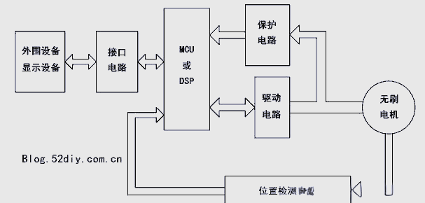 在無刷電機(jī)中,定子和轉(zhuǎn)子扮演著核心角色,而驅(qū)動電路則是確保電動機(jī)順暢運行的關(guān)鍵。典型的無刷直流電動機(jī)控制或驅(qū)動系統(tǒng)框圖如下: