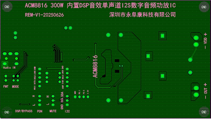 深圳市永阜康科技有限公司現(xiàn)在大力推廣國(guó)內(nèi)首款氮化鎵D類音頻功放芯片-ACM8816, 集成了7mΩ Rdson GaN氮化鎵,48V供電時(shí),驅(qū)動(dòng)到4Ω可以在10%THD+N內(nèi)輸出1×340W的功率,QFN-48貼片封裝,不需要外接散熱器輔助散熱。