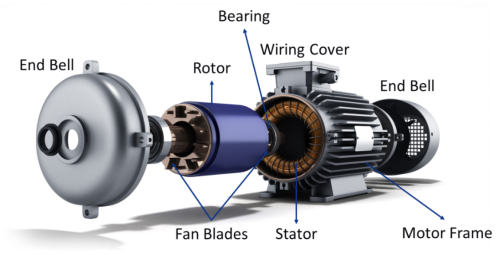 電機(jī)通常由端蓋、轉(zhuǎn)子、軸承及帶繞組的定子組成。多年來,這些部件的材料不斷演進(jìn)。例如,轉(zhuǎn)子和定子線圈從鋁材轉(zhuǎn)為銅材,提升了導(dǎo)電性和效率。此外,制造精度的進(jìn)步降低了噪音并進(jìn)一步提高了效率。