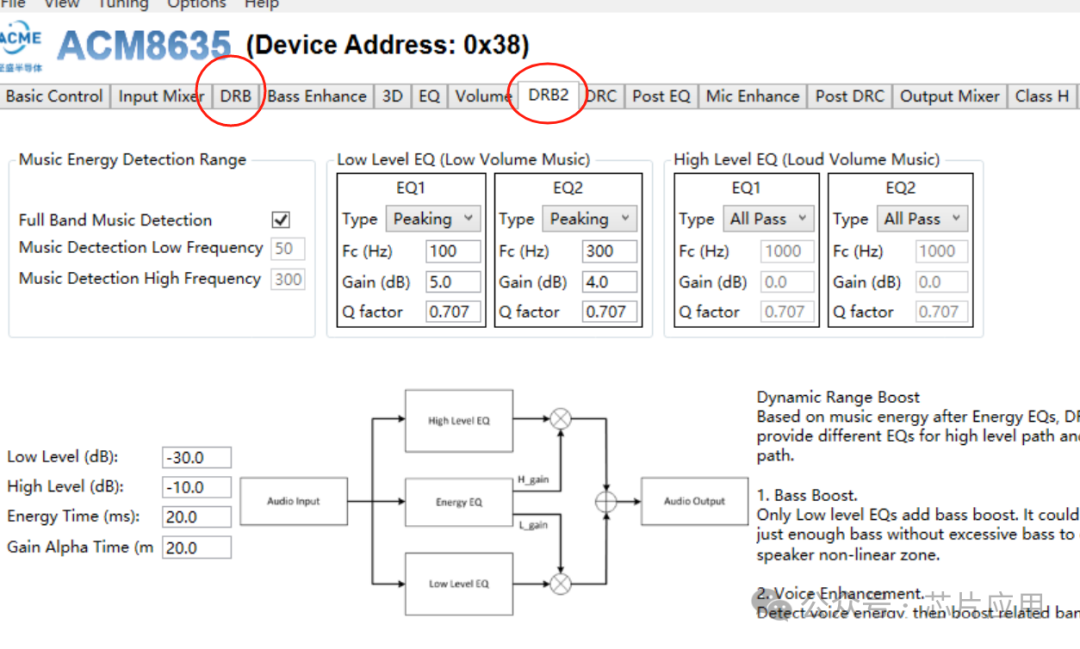 DRB自從至盛推出后,收到廣泛好評,在8635/8687兩個(gè)升級產(chǎn)品中,在大家的強(qiáng)烈建議下,增加到兩組DRB,可以同時(shí)做到小音量低音增強(qiáng),大音量尖銳聲音衰減等搭配應(yīng)用。
