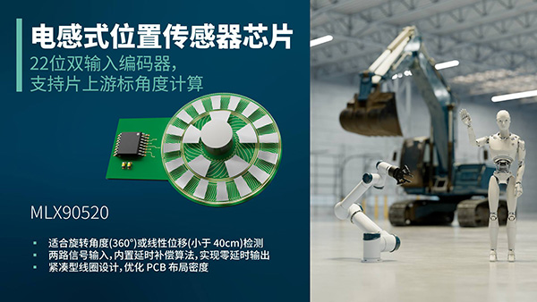 MLX90520是一款具備22位高精度分辨率的編碼器芯片,可為旋轉(zhuǎn)和線性運動(最大400毫米)提供低噪聲、零延遲的電感式位置檢測。這有助于實現(xiàn)對大型機械臂、線性執(zhí)行器以及其他旋轉(zhuǎn)組件進(jìn)行安全、可重復(fù)的精準(zhǔn)控制。相較于傳統(tǒng)光學(xué)編碼器,MLX90520在尺寸和魯棒性方面優(yōu)勢顯著,并且還提供SPI或SSI輸出接口,以滿足多樣化的應(yīng)用需求。
