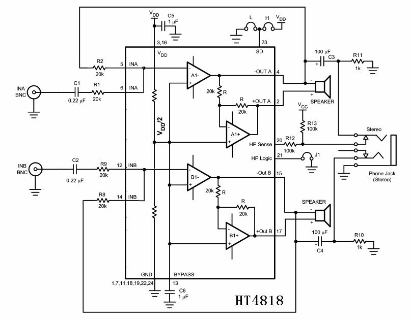 2X40W/18V/4Ω或75W/24V/4Ω |