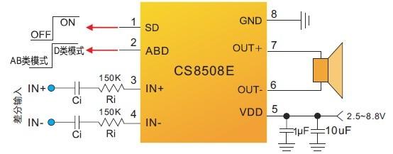 當(dāng)前位置:首頁->產(chǎn)品展示->功放IC->CS8508E(AB類/D類切換8W單聲道音頻功放IC) |