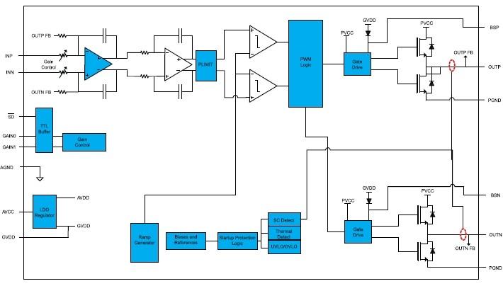內(nèi)置升壓的30W立體聲D類(lèi)音頻功放 |