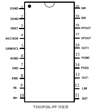 I2S數(shù)字輸入20W立體聲無電感閉環(huán)D類音頻功放IC |