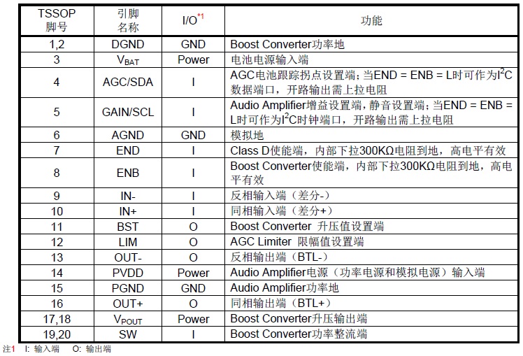2X8.5W/2.7V-5.5V(內(nèi)置自適應升壓模塊)/4Ω |