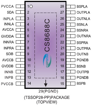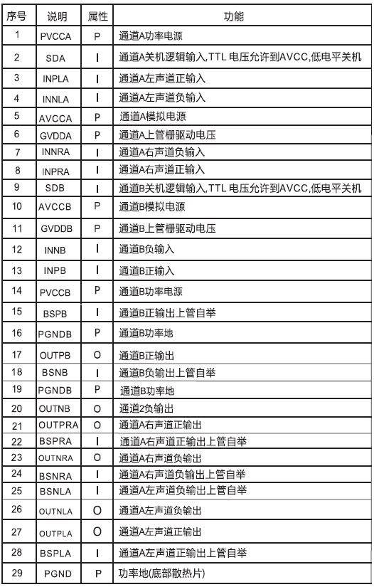 無(wú)濾波2X25W立體聲D類功放IC,管腳兼容TPA3110 |