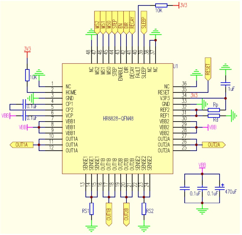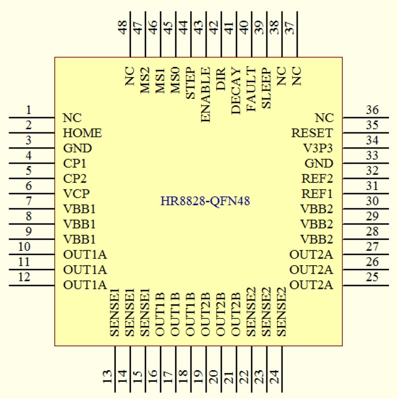 HR4988是一種便于使用的內(nèi)部集成了譯碼器的微特步進(jìn)電機(jī)驅(qū)動器。其設(shè)計為能使雙極步進(jìn)電機(jī)以全、半、1/4、1/8、1/16、1/32、1/64和1/128步進(jìn)模式工作。步進(jìn)模式由邏輯輸入MSx選擇。輸出驅(qū)動能力達(dá)到35V和±2A。HR4988包含一個工作在慢衰或混合衰減模式的固