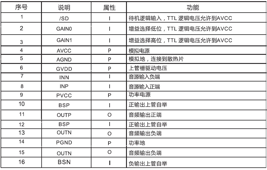 擴(kuò)頻功能、低空載電流、40倍增益、免濾波、2X23W/33W(PBTL) D類(lèi)音頻放大器 |