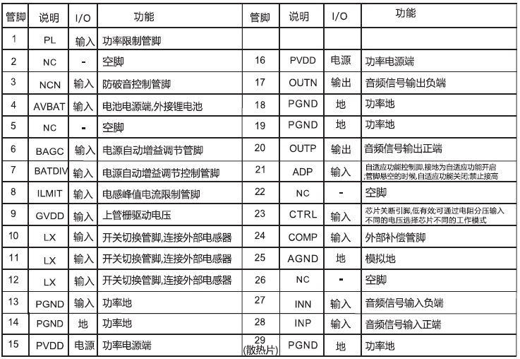 恒定4.8W/2.5V-5.5V(內(nèi)置自適應(yīng)Charge Pump模塊)/4Ω |
