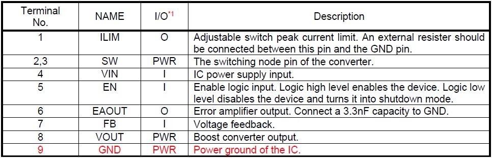 輸入電壓范圍VIN:2.7V-13V;輸出電壓范圍VOUT:4.5V-13V;內(nèi)部固定峰值電流:10A