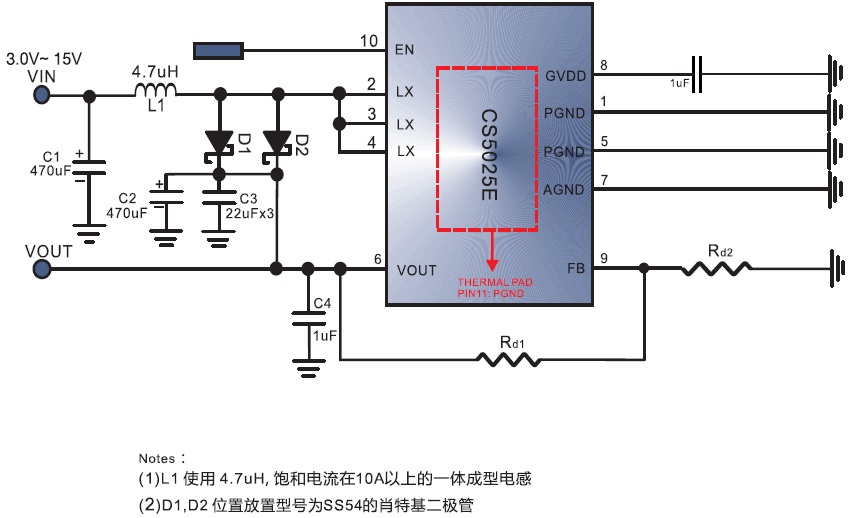 輸入電壓范圍VIN:2.7V-13V;輸出電壓范圍VOUT:4.5V-13V;內(nèi)部固定峰值電流:10A