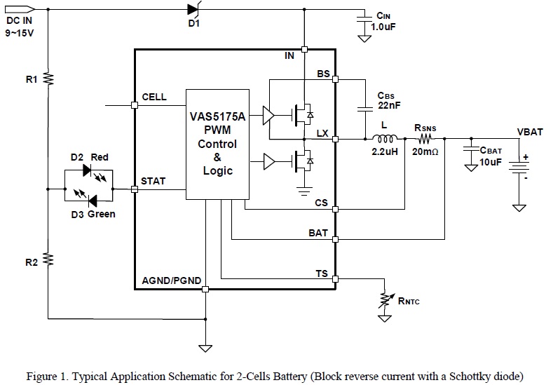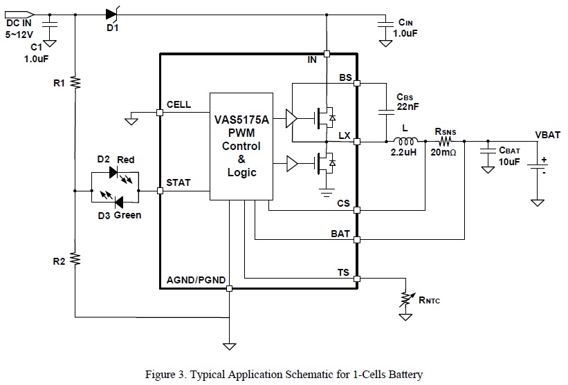 VAS5175A 是一款5V-24V輸入,高度集成的開關型鋰離子/聚合物電池充電芯片, 以高精度調節(jié)2A充電電流,和電池電壓。它密切監(jiān)測電池組的溫度只在設置安全溫度范圍下允許充電,還提供電池檢測、預充電調節(jié)、充電飽充和充電狀態(tài)指示等功能。 |