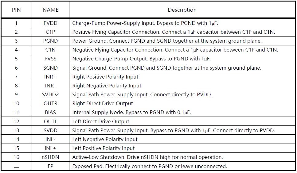 差分輸入、支持大動(dòng)態(tài)信號(hào)輸出、超低靜態(tài)功耗5μVRMS超低底噪, 400mW單聲道高性能音頻驅(qū)動(dòng)芯片 |