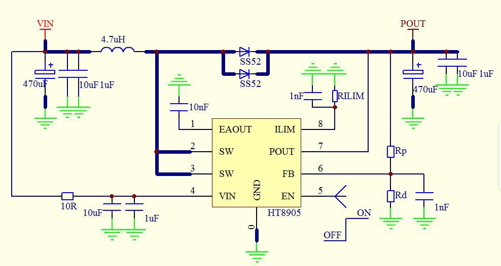 輸入電壓范圍VIN:2.7V-13V;輸出電壓范圍VOUT:4.5V-13V;內(nèi)部固定峰值電流:10A