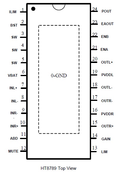 此外,HT8789內(nèi)部集成免濾波器調(diào)制技術(shù),能夠直接驅(qū)動揚聲器,內(nèi)置的關(guān)斷功能使待機電流最小化,還集成了輸出端過流保護、片內(nèi)過溫保護和電源欠壓異常保護等功能。