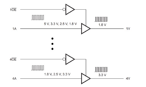 單電源四通道緩沖轉(zhuǎn)換門(mén)器件,具有三態(tài)CMOS輸出的電平轉(zhuǎn)換器 |