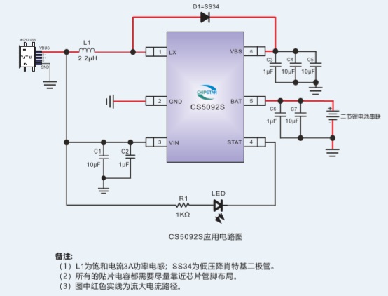 CS5092S是一款5V輸入、固定0.85A充電電流、支持雙節(jié)鋰電池串聯(lián)應(yīng)用的升壓充電管理IC,采用SOT23-6極小封裝。 |