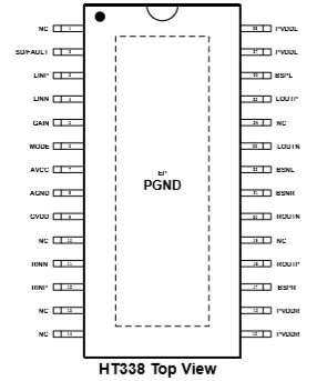 HT338(50W雙聲道/100W單聲道D類音頻功放IC) |