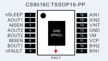 CS9016C為玩具、打印機(jī)和其它電機(jī)一體化應(yīng)用提供一種雙通道電機(jī)驅(qū)動方案。CS9016C有兩路H橋驅(qū)動,可以驅(qū)動兩路刷式直流電機(jī),一個雙極步進(jìn)電機(jī),多個螺線管或者其它感性負(fù)載。每個H橋的功率輸出模塊由N溝道功率MOSFET組成,用于驅(qū)動電機(jī)繞組。每個H 橋均具備調(diào)節(jié)或限制繞組電流的電路。該器件利用故障輸出引腳實現(xiàn)內(nèi)部關(guān)斷功能,提供過流保護(hù)、短路保護(hù)、欠壓鎖定和過熱保護(hù),并提供了一種低功耗休眠模式。另外提供一個錯 誤輸出管腳nFAULT,當(dāng)過流過溫保護(hù)的時候,nFAULT為低電平.