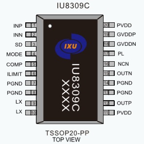 IU8309C提供了纖小的的TSSOP20-PP封裝形式供客戶選擇,其額定的工作溫度范圍為-40℃至85℃。