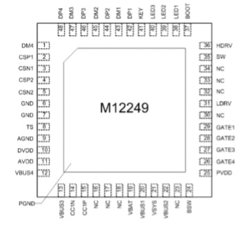 M12369 是一款面向大功率快充應用的電源管理 SOC,集成了微處理器、雙路降壓變換器、快充協(xié)議控制 器,支持 PD3.1、QC3.0、SCP、FCP、AFC、BC1.2 DCP 等全部主流快充協(xié)議,結(jié)合少量元件即可組成雙C 口的 140W大功率快充解決方案;輔以 DC-DC 芯片,還可擴展為3路獨立的C+C+AA多口大功率快充解決方案。