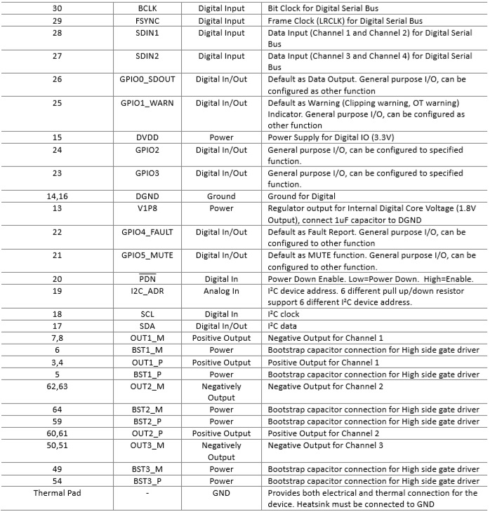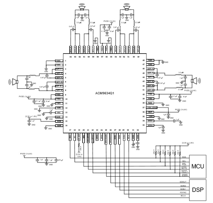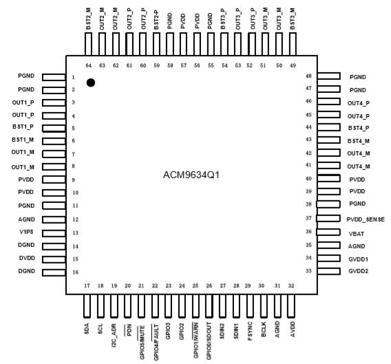 ACM9634是一款支持負載檢測的4*75W、4通道數(shù)字輸入車載D類音頻功率放大器。支持40V的load dump.在2.1MHz的開關(guān)頻率下可支持小尺寸輸出電感,節(jié)省PCB面積,同時也簡化AM Radio的抗干擾設計。ACM9634支持標準I2S或者TDM16的接口,可以在一組I2S(TDM)總線上支持16個喇叭發(fā)聲。內(nèi)部集成供電電壓檢測ADC,多路溫度檢測傳感器,能實時檢測電壓和溫度變化上報給主平臺優(yōu)化故障管理和熱管理。采用業(yè)界最全面的低EMI技術(shù),讓車載音響系統(tǒng)EMI設計變的簡單高效。
