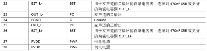 - 超低靜態(tài)電流: <28mA, PVDD=12V, 輸出 LC =10uH+0.68uF